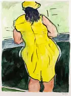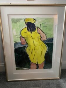 Woman in the Red Lion Pub is a signed, numbered limited edition print by Bob Dylan, from his acclaimed Drawn Blank Series.