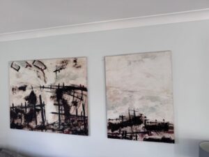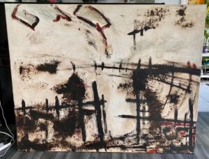 A larger companion piece within Ernst Kraft’s abstract practice, this Untitled (2005) embodies his exploration of rhythm, texture and spatial harmony. Broad gestural strokes and tonal layering evoke a balance between tension and calm. The composition reflects Kraft’s mature period in Spain, where his works became increasingly architectural yet deeply human in presence and tone.