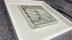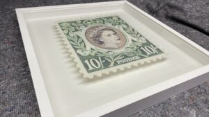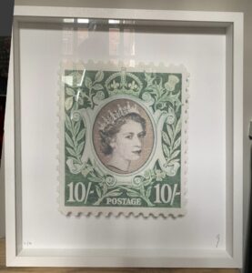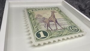 Guy Gee’s Stamp is a striking blend of nostalgia and artistry, celebrating the timeless elegance of classic postage stamps. This listing features three distinct stamps: Portugal, Tanzania, and Queen Elizabeth, each rendered with intricate detail and a textured, embossed effect that mimics the tactile quality of the originals. Subtle, vintage-inspired colours and delicate patterns evoke the romance of communication and the heritage of traditional postal design, while Gee’s contemporary style adds depth and sophistication.