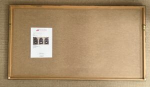 Kumar’s work often reflects the meeting of two worlds: her British upbringing and her Indian ancestry. In this piece, those influences intertwine seamlessly, the gold leaf suggesting divine illumination and cultural memory, while her contemporary etching technique introduces modern depth and precision. The large format (58 × 118 cm unframed, 74 × 133 cm framed) gives the artwork a commanding presence, inviting reflection and conversation.